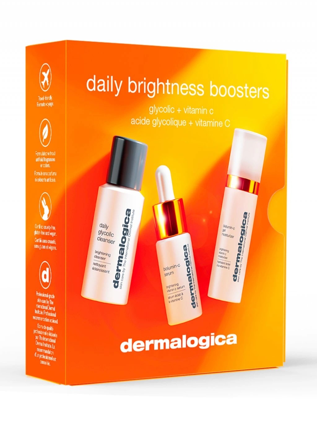 Sada obsahuje tři produkty pro rozjasnění pleti a boj proti známkám stárnutí. Sada zahrnuje čisticí prostředek s glykolovou kyselinou, sérum s vitamínem C pro zpevnění a zlepšení tónu pleti a hydratační gelový krém pro zdravý, jasný vzhled. Ideální pro pleť, která potřebuje rozjasnit, zpevnit a obnovit.
